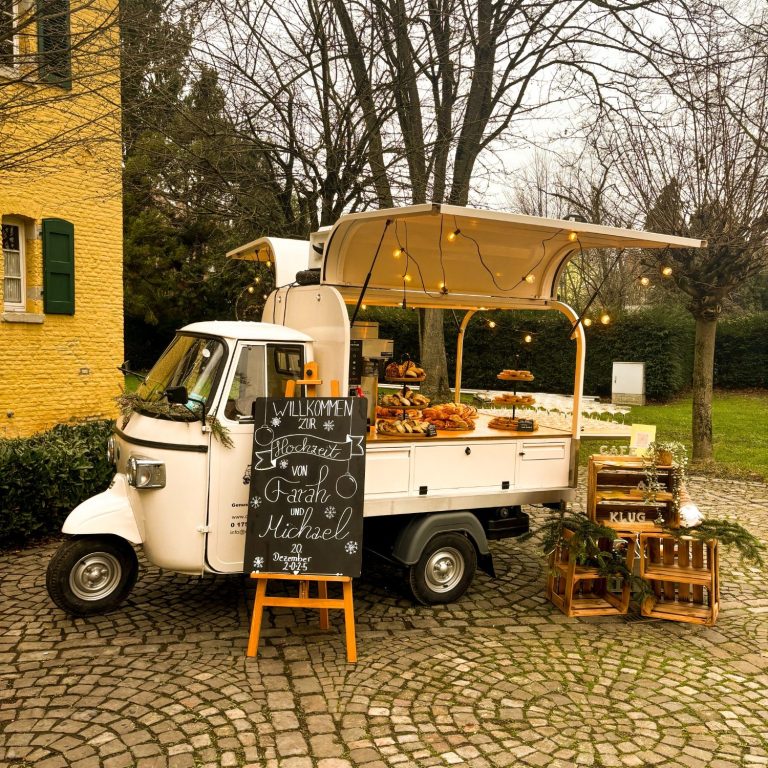 Ob Aperitif nach der Trauung, Espresso-Bar am Nachmittag oder Mitternachtssnack unter Lichterketten – die Ape sorgt nicht nur für Genuss, sondern auch für echte Wow-Momente und wunderschöne Fotomotive.